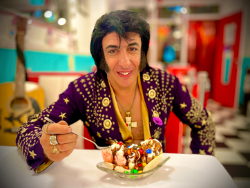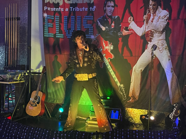 Singing all those favourite songs from Hound Dog, Blue Suede Shoes, All Shook Up, to Suspicious Minds, Guitar Man, and the Wonder of You to name but a few songs from his extensive repertoire .